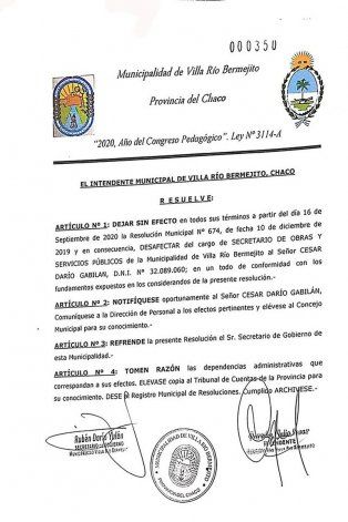 A raíz del brutal ataque, el intendente local, Julio Paredes, comunicó la decisión de separar del cargo a César Gavilán. “Es necesario desafectarlo a modo de contribuir con el esclarecimiento de los hechos y a efecto de prever el normal funcionamiento de los servicio municipales”, dice la resolución del jefe comunal difundida en redes sociales.