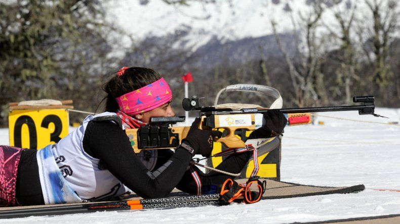 En esta disciplina los participantes recorren un tramo esquiando y luego toman la carabina y disparan cinco veces a un blanco fijo con penalización por cada disparo no acertado.
