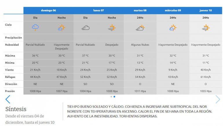 Según el pronóstico de la AIC el domingo amanecerá parcialmente nublado con una temperatura mínima de 20°C y por la tarde el termómetro podría subir hasta los 36°C.