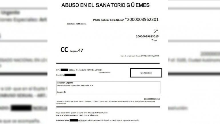 "Es un abuso sexual muy grosero que se llevó a cabo en el quirófano del Sanatorio Güemes, con ella dormida, en ocasión de una operación de urgencia en plena pandemia, el 25 de agosto. Su marido estaba esperándola. Es gravemente ultrajante", aseguró le letrada.