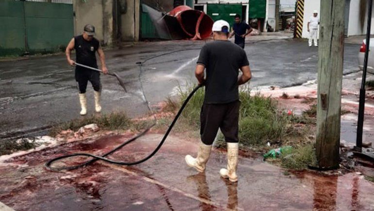 La empresa San Roque protagonizó una imagen impactante: más de 5.000 litros de sangre se desparramaron por las calles de Morón, a metros del cementerio municipal. Todo se fue de las manos a raíz del derrumbe de un tanque que justamente almacena esa cantidad de sangre animal en su interior, lo que provocó que la intersección de las calles Pola e Hipólito Yrigoyen pareciera un gran río rojo, de consistencia espesa.