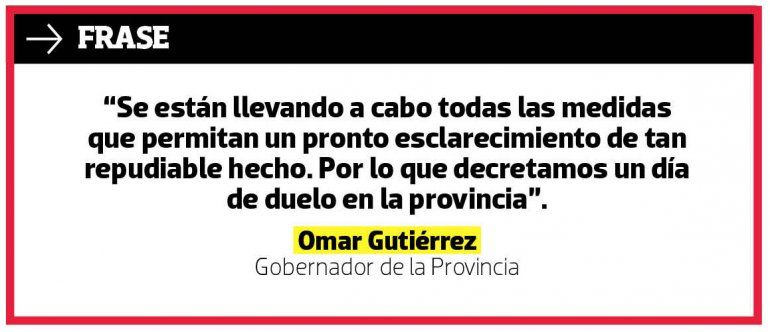 El gobierno provincial decretó un día de duelo y de inmediato se dispuso que el subsecretario de Seguridad, Gustavo Pereyra, tome cartas en el asunto y se dispongan todos los recursos necesarios para dar con el autor y esclarecer el caso.