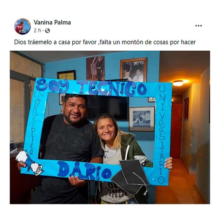Una de las hermanas Darío, Vanina, realizó una publicación en Facebook en la que solicitó una cadena de oración. “Dios mío, ayudame ahora en este momento de desesperación. Les pido a todos que oren, que recen por mi hermano Darío, que está siendo intensamente buscado en El Carrizal”.