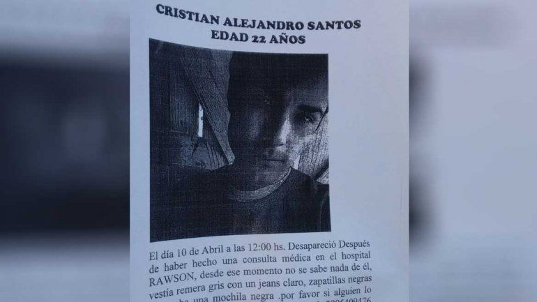 Cristian Alejandro Santos desapareció el pasado martes 10, luego de ir a una consulta médica en un hospital de la provincia de San Juan. Aunque se encontraba en aquella provincia, su familia cree que podría haber viajado hacia Neuquén.