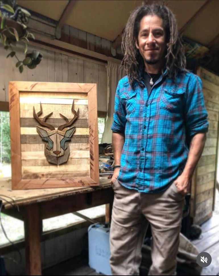 Mexi, Ralph Urbina Bravo, está lijando el marco de una puerta que trajo desde La Boca, para hacer con eso el cuadro de un cóndor que sobrevuela el volcán Lanín. De pronto, debajo de varias capas de pintura, encuentra que alguien alguna vez escribió: “Galdys, te quiero”. No sabe y quizá nunca sepa quienes fueron esas personas, pero tiene la certeza de que muy pronto, esa madera que alguna vez contuvo un amor que quedó muy lejos en el tiempo, va a estar colgada en la pared de alguna casa y cientos de ojos van a detenerse contemplarla.