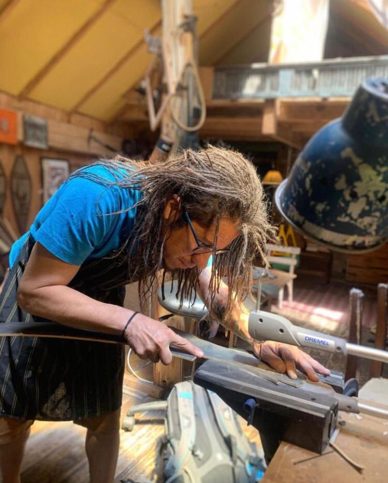 En 2012 conoció a Mani, una diseñadora de interiores que se dedicaba a la restauración de muebles. Además de enamorarse de ella, también lo hizo del noble oficio de trabajar con la madera que le fue enseñando y, él, como es una persona inquieta y muy receptiva, recibiendo hasta hacerlo propio. Empezaron a salir y también a trabajar juntos en El Guatán, el taller que crearon donde recuperan muebles que para la gente ya no sirven, los restauran y les dan una nueva oportunidad. Pero no sólo eso, sino que empezaron a fabricar otros con madera de demolición, es decir, con maderas antiguas de casas que tiraron abajo, de objetos desarmados que fueron a parar a algún volquete.