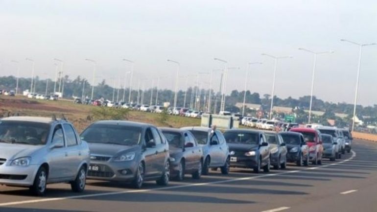 Hay largas filas de autos para cruzar hacia Brasil, la mayoría va en busca de carne, verduras y productos de primera necesidad a precios que oscilan- en promedio - entre la mitad y un tercio de lo que se consigue en Argentina.