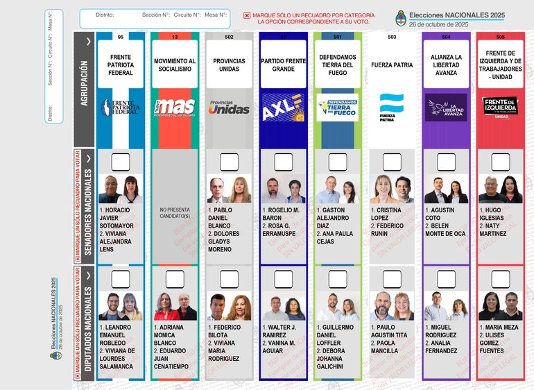 El 26 de octubre los fueguinos votarán con Boleta Única de Papel para elegir senadores y diputados nacionales. Ocho listas competirán en Tierra del Fuego.