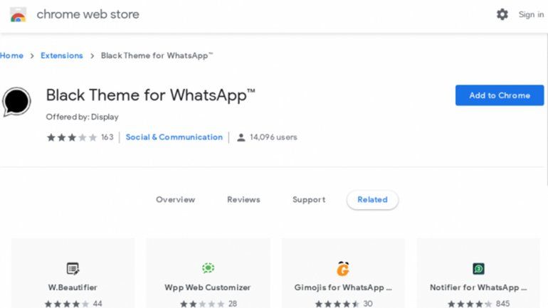 En el caso de acceder desde una computadora a través de WhatsApp web, se invita al usuario a instalar una extensión de Google Chrome, llamada Black Theme for Whatsapp, que permitirá cambiar la aplicación a un color más oscuro.