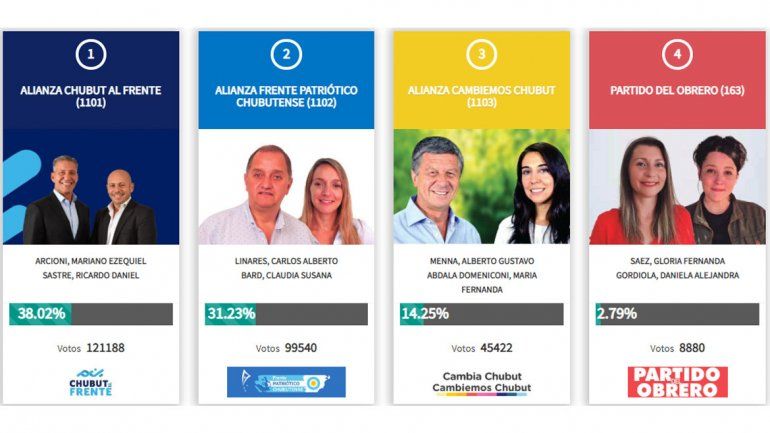 Arcioni se impuso en las cinco ciudades más grandes -Comodoro Rivadavia, Trelew, Madryn, Rawson y Esquel- y en casi toda las localidades de la provincia, por lo cual el resultado se volvió irreversible.