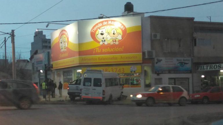 Una camioneta y un utilitario que trasladaba chicos de una escuela especial chocaron esta mañana y terminaron a escasos centímetros de una tienda de mascotas ubicada en Félix San Martín y Linares.