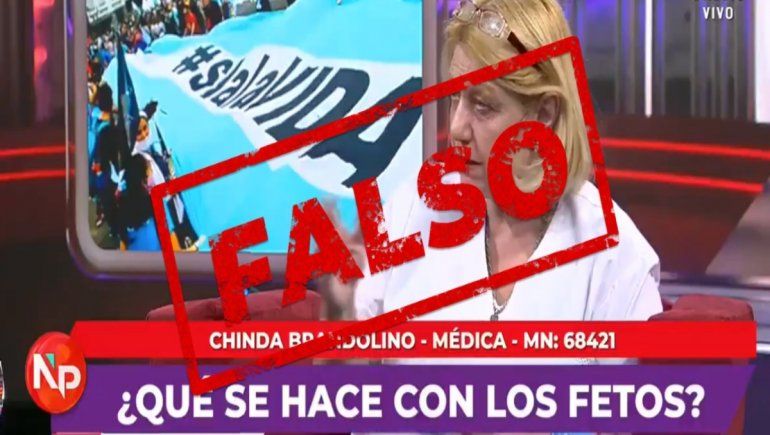En paralelo, el portal Chequeado.com confirmó que son falsas las declaraciones que brindó sobre las vacunas y los fetos abortados la médica Chinda Brandolino, en diálogo con la conductora en su programa Nada Personal.