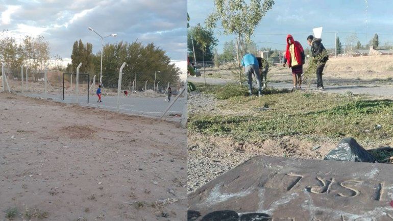"Se nos ocurrió hacer esto porque siempre vienen chicos acá y esta lleno de vidrios y de mugre, y para ellos es un peligro", contó Nicolás a LM Neuquén. El joven explicó que allí, donde también tienen una canchita, hay un zanjón donde va a parar toda la basura que queda suelta, y que además en el lugar no hay cestos.