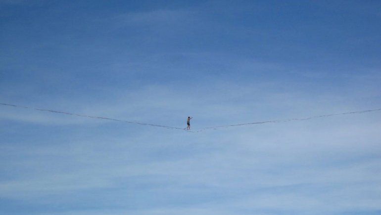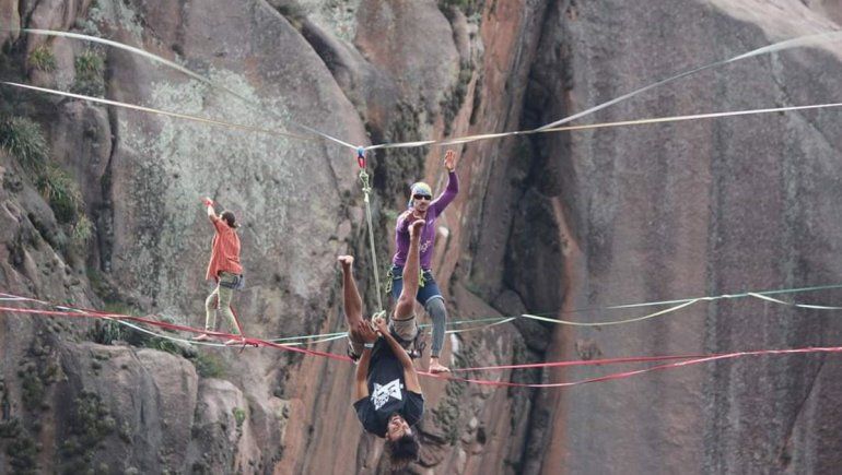 El slackline consiste en hacer equilibrio a través de una cinta que se tensa entre dos puntos fijos, y adopta el nombre de highline cuando la cinta se coloca a más de 25 metros de altura.