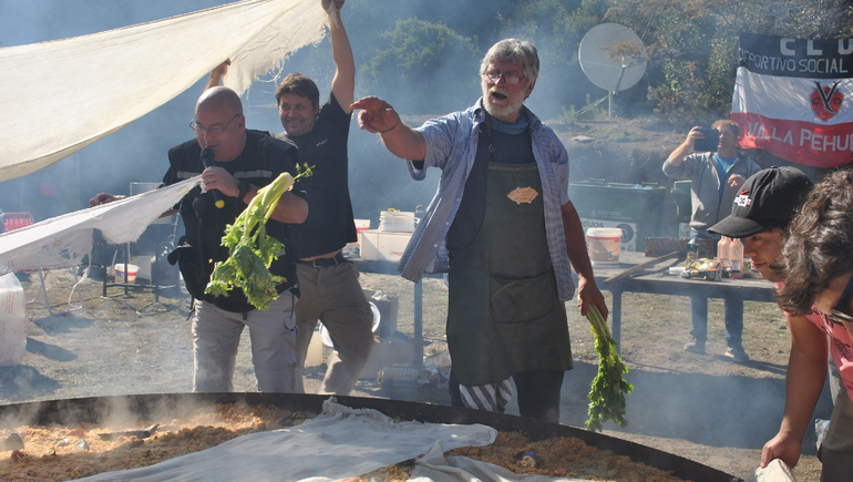 La paella ya se ha transformado en uno de los sellos distintivos de la gastronomía neuquina, en especial de esta comarca cordillerana. Sobre los ingredientes del tradicional plato, señaló: “Lo que tiene la paella son 200 kilos de mariscos y 120 kilos de arroz, a los que se suman tres cajones de pimientos, cuatro bolsas de cebollas, puerro, apio, ajo y mucho tomate”.