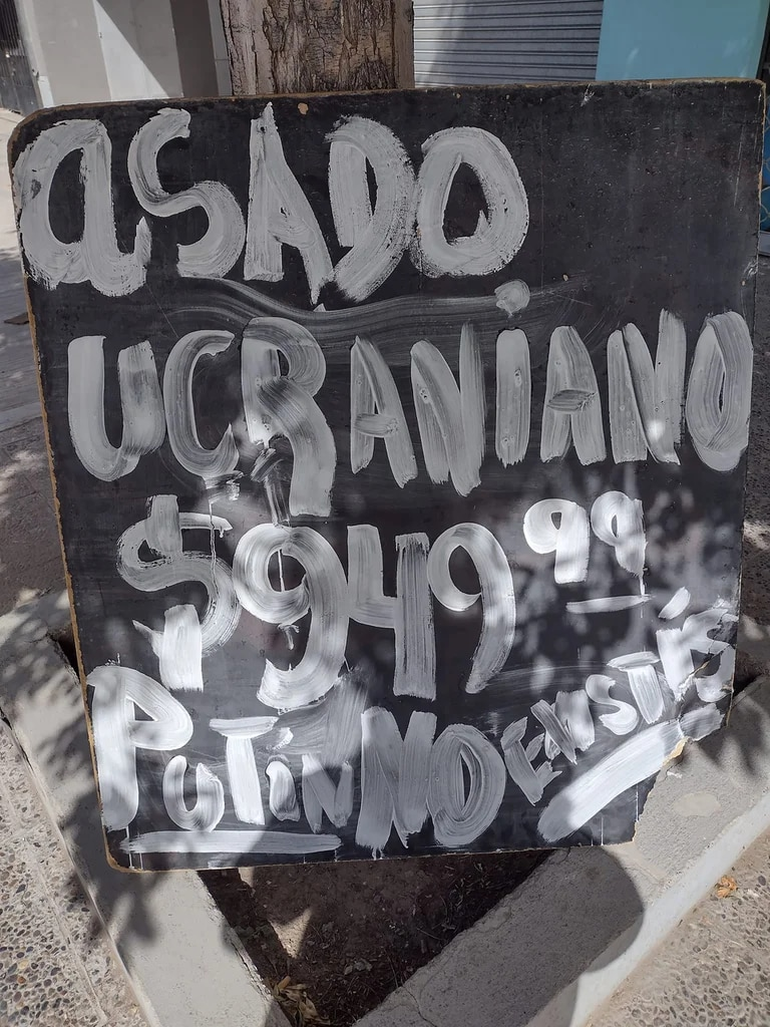 El aviso escrito en una de esas pizarras donde habitualmente se anuncian promociones de productos esta vez bromeaba con la inflación galopante que sufre el país.