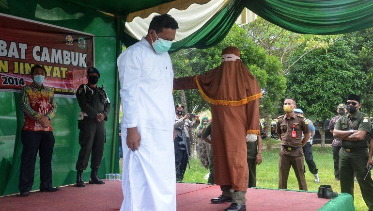 Una pareja acusada de adulterio en la provincia indonesia de Aceh fue azotada en pública y mientras la mujer recibió 100 latigazos, su presunto amante solo padeció 15.