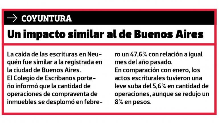 Según el Colegio de Escribanos de Neuquén, se produjo una caída promedio de las escrituras realizadas con bancos del orden del 80%, estimación que surge de comparar el primer trimestre de este año con igual período pero de 2018.