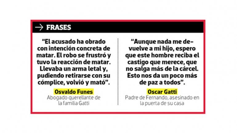 “Núñez le exigía a Fernando la entrega de un maletín, siempre apuntándolo con una pistola. Ante la negativa de Gatti, Núñez, que había emprendido su huida, volvió sobre su marcha y le disparó”, sentenció el fiscal.