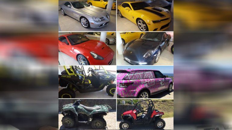Asimismo, los investigadores incautaron numerosos autos de lujo, entre los que se destacan una Ferrari, un Mercedes Benz (ambos con patente uruguaya), un Porsche y un Chevrolet Corvette. Según se informó, ninguno de los rodados se encontraban a nombre de Marcelo Balcedo o de su pareja.