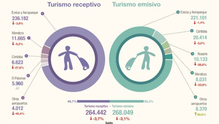 Las salidas de residentes alcanzaron a 3.707.200 y el resultado anual acumulado registró una caída interanual del 11,9%.