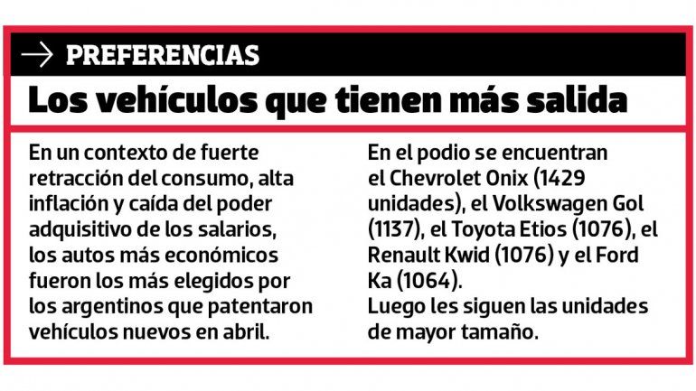 Esta cantidad de coches patentados representa una caída del 35,3% en abril y en la comparación interanual. Si se contrastan los datos con las ventas de marzo, cuando se patentaron 1239 autos cero kilómetro, se comprueba que la caída fue del 3,2%.