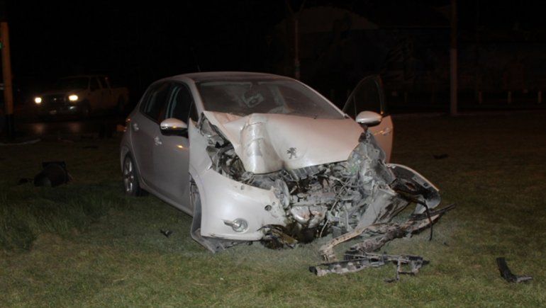 El Peugeot venía desde Cinco Saltos hacia Centenario cuando al llegar al cruce con Ruta 7, siguió de largo en línea recta, subiendo a la rotonda y chocando de lleno contra el semáforo de la mano Centenario-Vista Alegre.