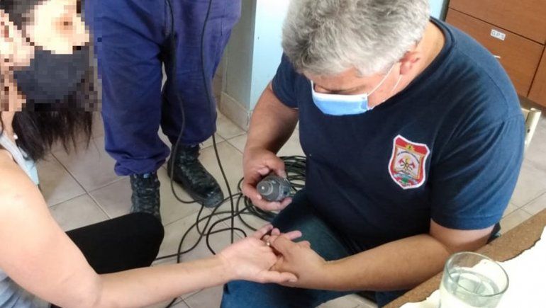 La mujer acudió este viernes por la tarde al cuartel Central N°8 luego de que un anillo se le quedara trabado en un dedo de su mano derecha, lo que ya empezaba a generarle complicaciones en la circulación sanguínea.
