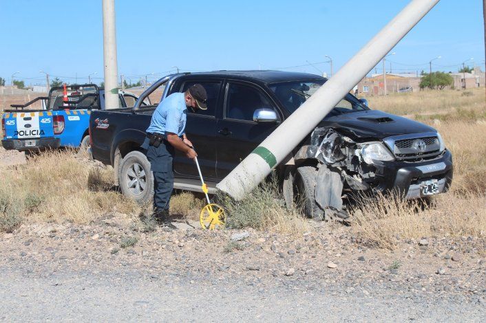 Un hombre alcoholizado de 60 años aproximadamente impactó su Toyota Hilux contra un poste de luz en la tarde de este miércoles en la localidad de Centenario. Si bien no hubo lesiones y presentó 1,30 gramos de alcohol en sangre, se investigan las causas de la colisión.