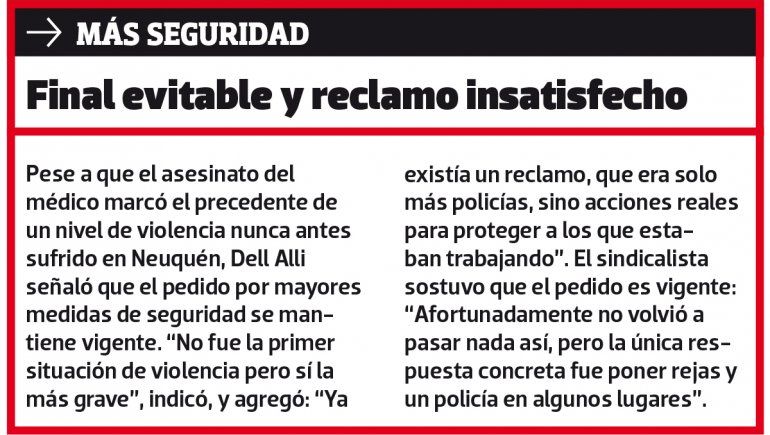 El reclamo sigue vivo hoy y en muchas profesiones, pero ese día de marcha y asamblea definitivamente marcó la vida de profesionales y vecinos de Cutral Co. “Era un día de paro y estábamos reunidos en asamblea cuando nos enteramos. Fue conmocionante realmente, nadie esperaba que pasara algo así”, contó César Dell Ali a LM Neuquén, secretario general del Sindicato de Profesionales de la Salud Pública de Neuquén.