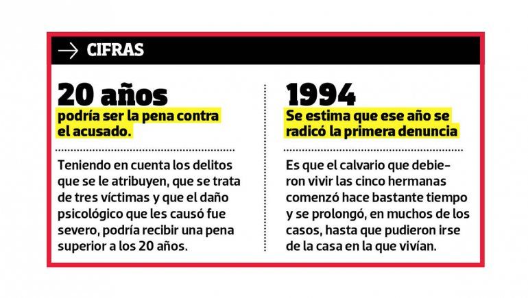 En uno de los casos, el imputado violó a su hija a los 10 años y los abusos continuaron hasta que la adolescente pudo irse de su casa a los 17 años en el 2013. Otro, ocurrió en 2015 y el tercero fue en 2014, cuando la menor de las hermanas tenía también 10 años. Según la teoría de la fiscalía, los tres casos ocurrieron en el período comprendido entre 2005 y 2015.