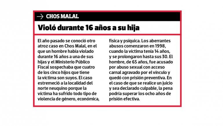 El caso llegó a juicio luego de que en 2018 una de las jóvenes radicara la denuncia en Zapala, aunque anteriormente sus hermanas mayores también habían hablado de los aberrantes abusos que sufrieron por parte de su progenitor. Finalmente este viernes terminó el juicio con un veredicto de culpabilidad para el hombre de 73 años.