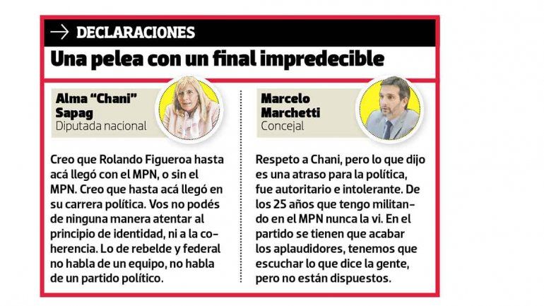 La polémica se desató por la carta que publicó Figueroa en las redes sociales titulada “El MPN se transforma o muere”, algo que llevó la discusión al máximo.
