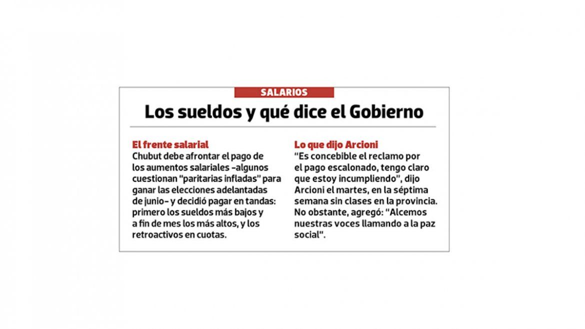 El secretario adjunto del Sindicato del Petróleo y Gas Privado de Chubut, Carlos Gómez, comentó: “La consecuencia directa del paro es que vamos a cobrar un 50% o 40% del sueldo”. En la Uocra también temen descuentos significativos. Una posibilidad es que en septiembre se pueda salvar dado que las contratistas adelantaron facturaciones;sin embargo, en octubre habrá empresas con números rojos en sus cuentas corrientes.