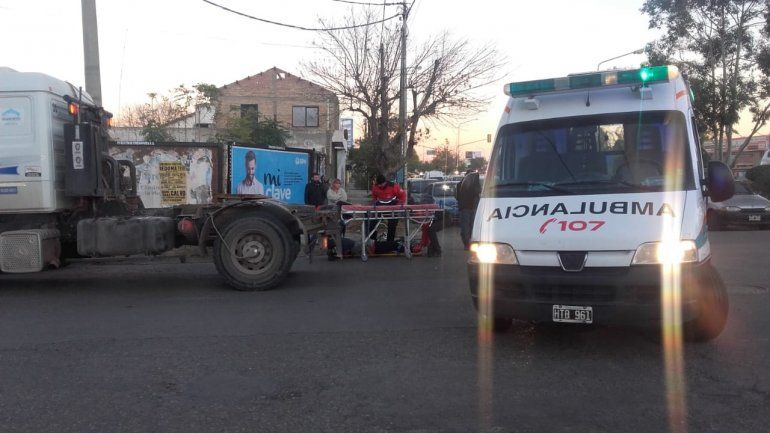 A las 8.40 de hoy un camión cruzó la Ruta 22 por calle La Pampa en dirección norte-sur y no advirtió que un ciclista circulaba por calle J.J Lastra y lo chocó.