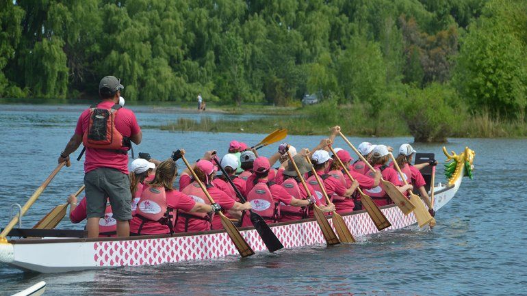 Después de una charla explicativa y una serie de estiramientos, las sobrevivientes, remeros experimentados, médicos de la Fundación Médica de Río Negro y Neuquén, y otros allegados se lanzaron al agua para comenzar la travesía y llevar su mensaje al resto de la ciudad. El bote dragón era el centro de la comitiva, que iba liderada por un guía y era acompañada por una lancha de Prefectura.