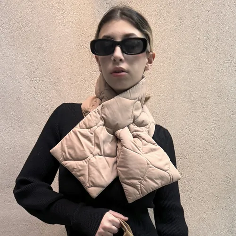 Se trata de la bufanda puffer, un accesorio inspirado en el acolchado de las camperas inflables, que ganan protagonismo por diseño moderno y capacidad térmica. Son muy abrigadas y se convirtieron en la pieza clave para transformar un outfit básico en uno con estilo, señala TN.