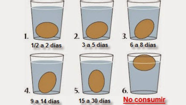 Por ejemplo, si introducimos el huevo en agua, si se hunde, será un indicador de su frescura, si por el contrario flota, se tratará de un huevo más cercano al final de su fecha de consumo preferente.