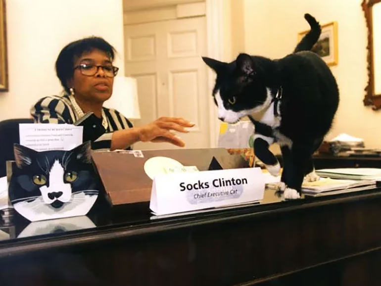 La celebración de este jueves es en memoria de la muerte del gato más famoso de los ´90. Se trata de Socks, el gato de Chelsea, hija de Bill Clinton, quien fue presidente de Estados Unidos y este gato saltó a la fama por pasearse sin tapujos por los actos públicos que se celebraban en la Casa Blanca, hasta el punto de tener su propia página web, un club de fans y recibir cartas para él.
