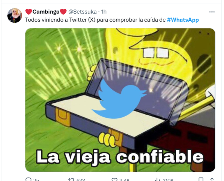 De esta manera, mientras esperan que el servicio de mensajería instantánea vuelva a funcionar con normalidad, llenaron de memes la red social de Elon Musk.
