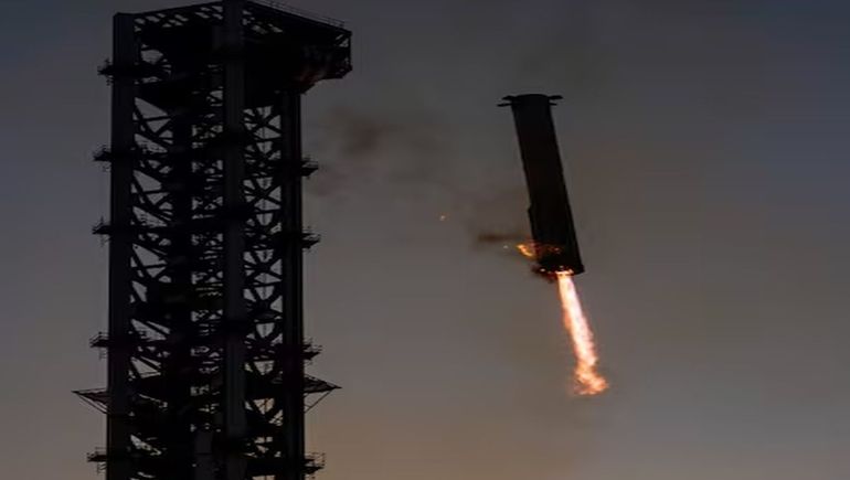 Uno de los momentos más impresionantes fue la maniobra de aterrizaje. El Super Heavy fue capturado en pleno vuelo por pinzas metálicas de gran tamaño, conocidas como "Palillos".