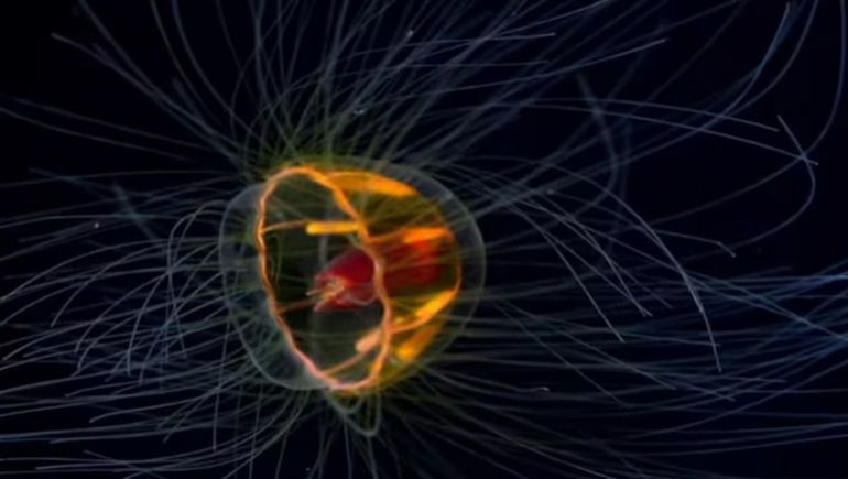 Las transmisiones en vivo permitieron observar escenas poco frecuentes incluso para la comunidad científica. Entre ellas, la aparición de una medusa traslúcida de mar profundo, registrada hasta el momento principalmente en el océano Pacífico frente a Estados Unidos y Hawái. Su detección en el Mar Argentino amplía el conocimiento sobre la distribución de estas especies. Uno de sus rasgos más llamativos es su reproducción vivípara, con crías que se desarrollan dentro del cuerpo materno y nacen completamente formadas.