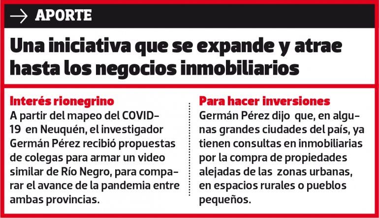 Indicó que, al trazar una evolución diaria, el video refleja "cómo el peso poblacional de cada localidad generó complicaciones para controlar el virus". Recordó que Loncopué fue noticia nacional por un brote masivo, "pero tuvo 33 casos activos como máximo y se recuperó rápido gracias al tamaño de su población, de alrededor de 5 mil habitantes, y la conciencia de cada vecino".