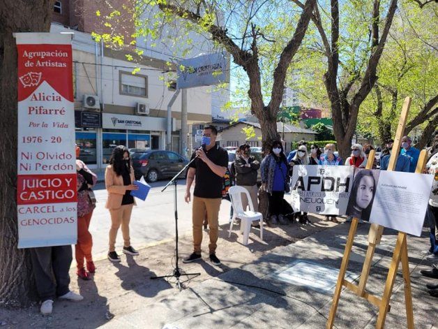 La baldosa, emplazada este mediodía en la calle Independencia al 400 de esta ciudad, fue una iniciativa de la Subsecretaría de Derechos Humanos, Diversidad y Pluralismo Cultural de la Municipalidad de Neuquén. En el acto estuvieron presentes integrantes de la APDH, de HIJOS Alto Valle y Neuquén y de la Asociación de Actrices de Neuquén, además de diputados y concejales.