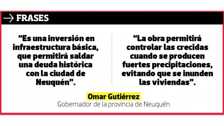 La segunda parte de la obra se realizará en la zona de las 127 hectáreas, donde se construirá una obra civil (un puente para mejorar la comunicación de los barrios de ese sector sur de la capital neuquina con el resto de la ciudad) y se instalará la zona de expansión, que son aproximadamente dos hectáreas demarcadas por terraplenes, que se utilizará como espacio para resguardar agua en caso de crecidas.