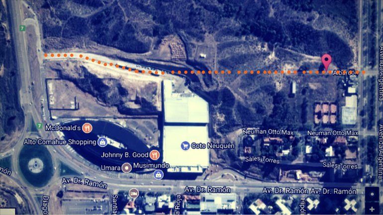 El acceso desde Ruta 7 se hará desde la calle de acceso para los camiones del hipermercado Coto y de ahí hasta el empalme con la Avenida Argentina donde está el edificio del Cirse.
