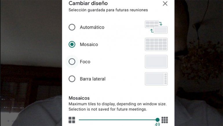 Además de esta opción de difuminar el fondo, en Meet se pueden ver hasta 49 personas al mismo tiempo a través de las opciones de diseño automático y de mosaico de la app.