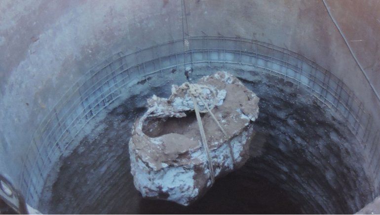 Los pozos para las bases del edificio tenían dos metros de diámetro y 10 metros de profundidad. En uno de ellos, a uno ocho metros de la superficie aparecieron los restos craneanos y algunas vertebras de un mamífero prehistórico.