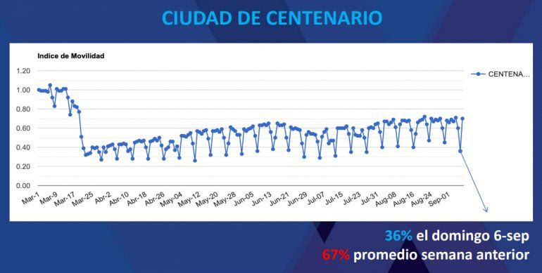 Gutiérrez lanzó el Plan de Contingencia Salud junto con la ministras Andrea Pevé, Vanina Merlo y el jefe de Gabinete Sebastián González. Fue el ministro coordinador quien presentó los primeros datos de circulación, que marcan una caída del 60% los días domingos en Neuquén, Centenario, Plottier y la comarca petrolera.