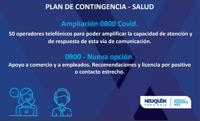 También el gobierno provincial dispuso la ampliación del 0800, sumando operadores telefónicos y nueva opción de apoyo a comercio y a empleados, recomendaciones y licencia por positivo o contacto estrecho.